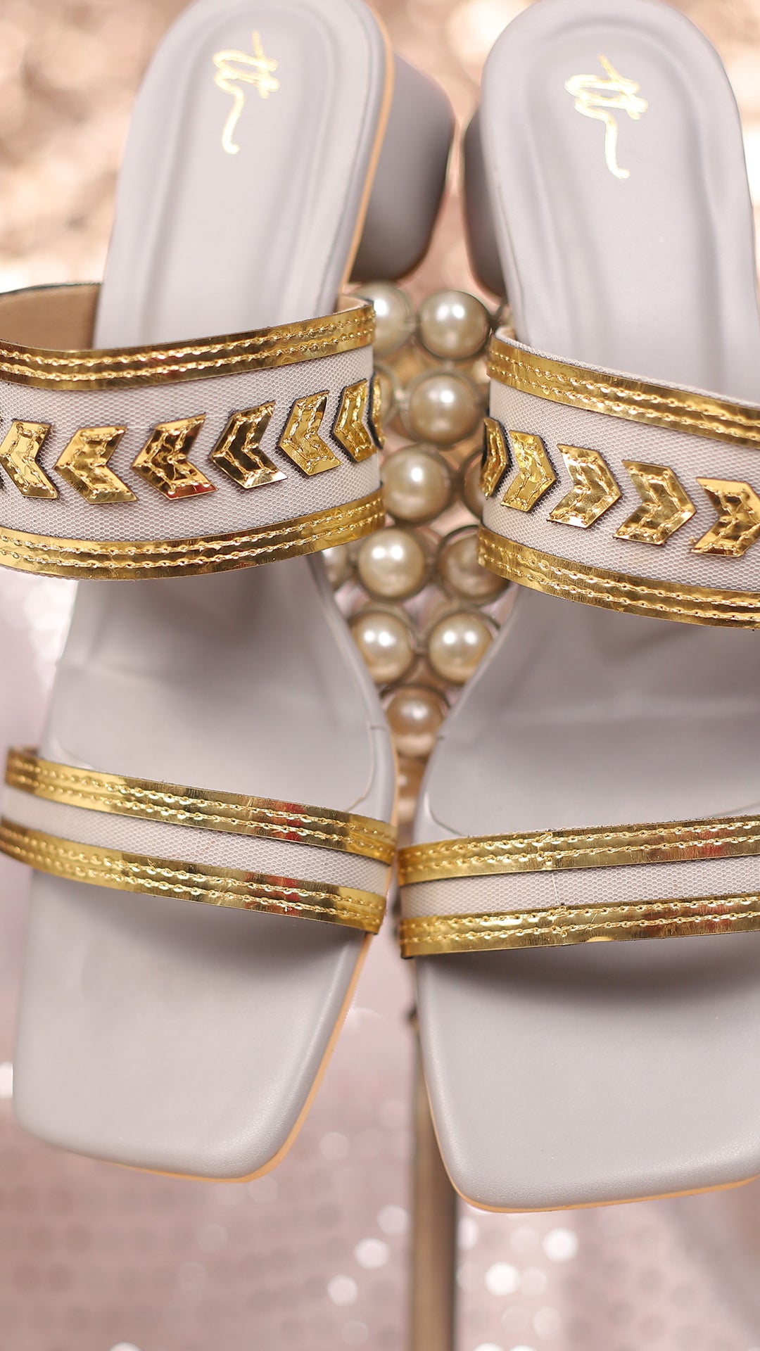 The Cenora Heels boast a 2-inch heel with a smoky grey base and a striking golden leather cutwork upper. Sophisticated yet bold, they are perfect for party or wedding wear, adding a touch of glamour to your ensemble with their timeless gold shimmer.