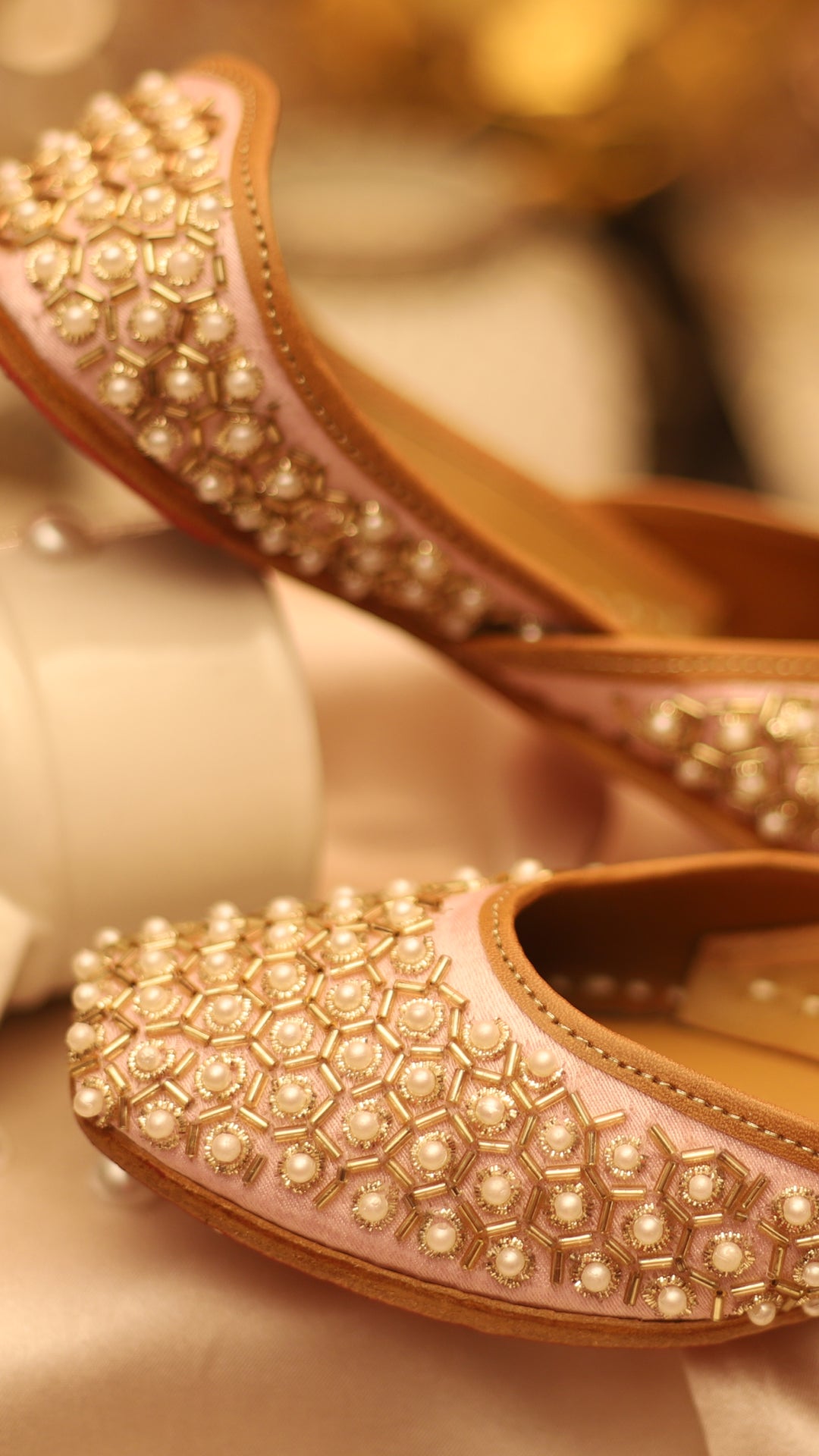 Soft, romantic, and delicately adorned — Gulnaaz weaves together fine pipe work and pearly accents on a charming pink base. Designed for bridesmaids, festive outings, or even intimate ceremonies, this Jutti offers a perfect blend of elegance and charm. Gulnaaz makes every step bloom with beauty.