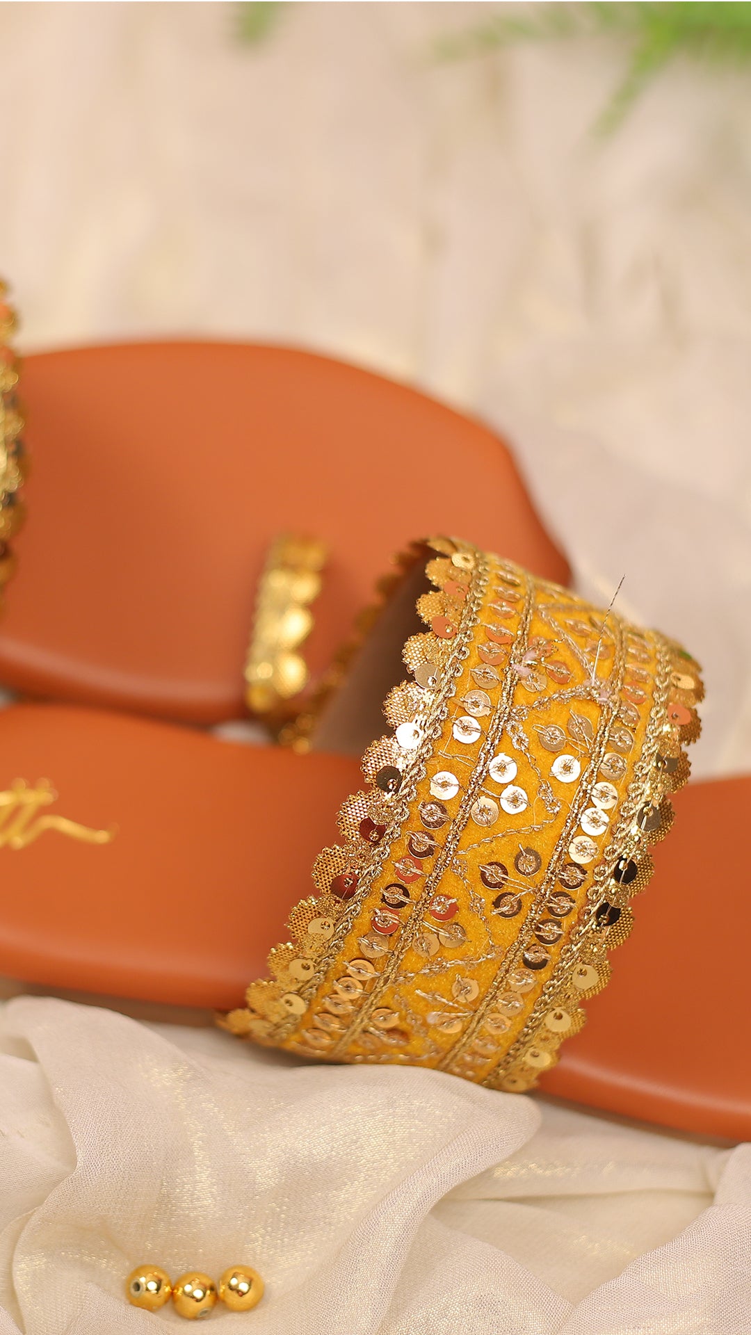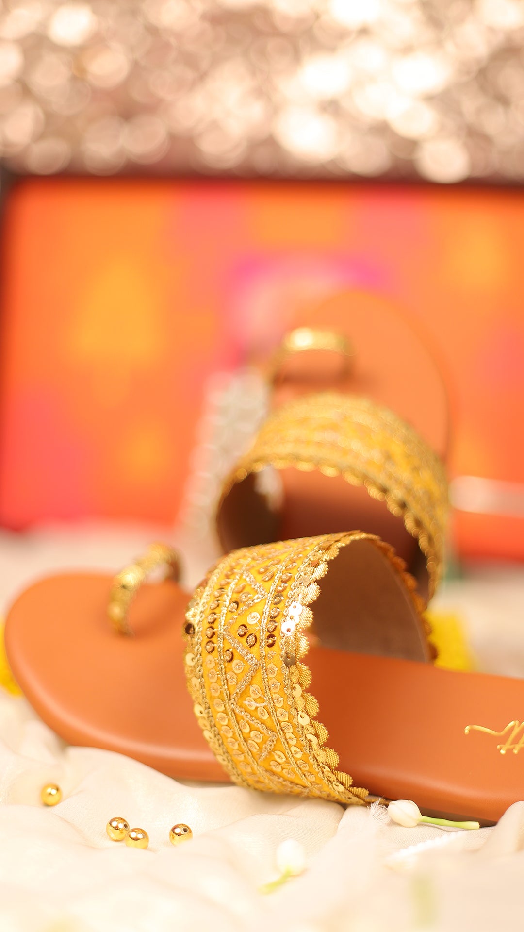 Bright and radiant, Inisha brings the warmth of a golden sunrise with its yellow base, adorned with sequin jaal embroidery. This Kolhapuri flat perfectly encapsulates the spirit of celebration, making it a standout piece for any festive occasion