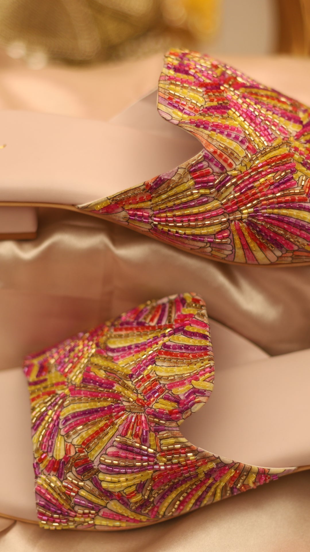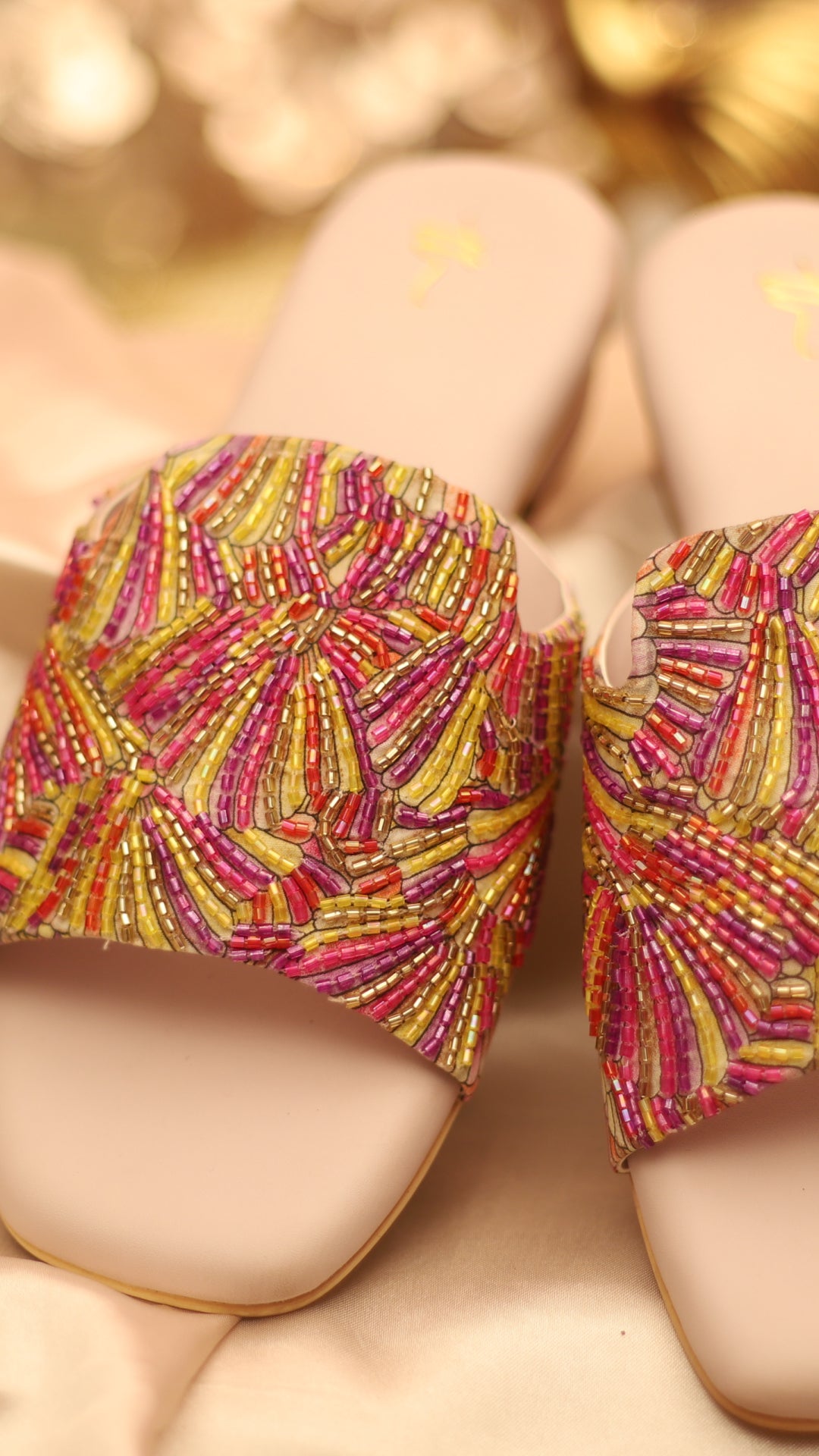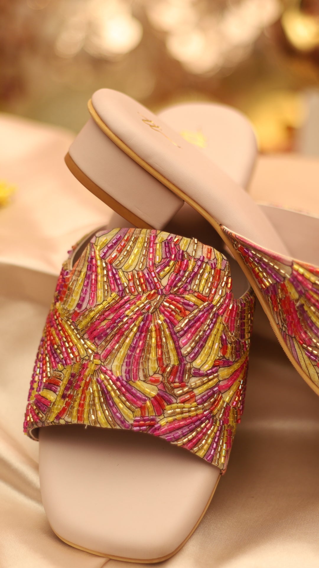 Color your steps with Calista, a vibrant multicolor open-toe heel featuring a beautiful piping work in soft beachy hues. Perfect for beach parties, destination weddings, or adding a splash of fun to casual wear.