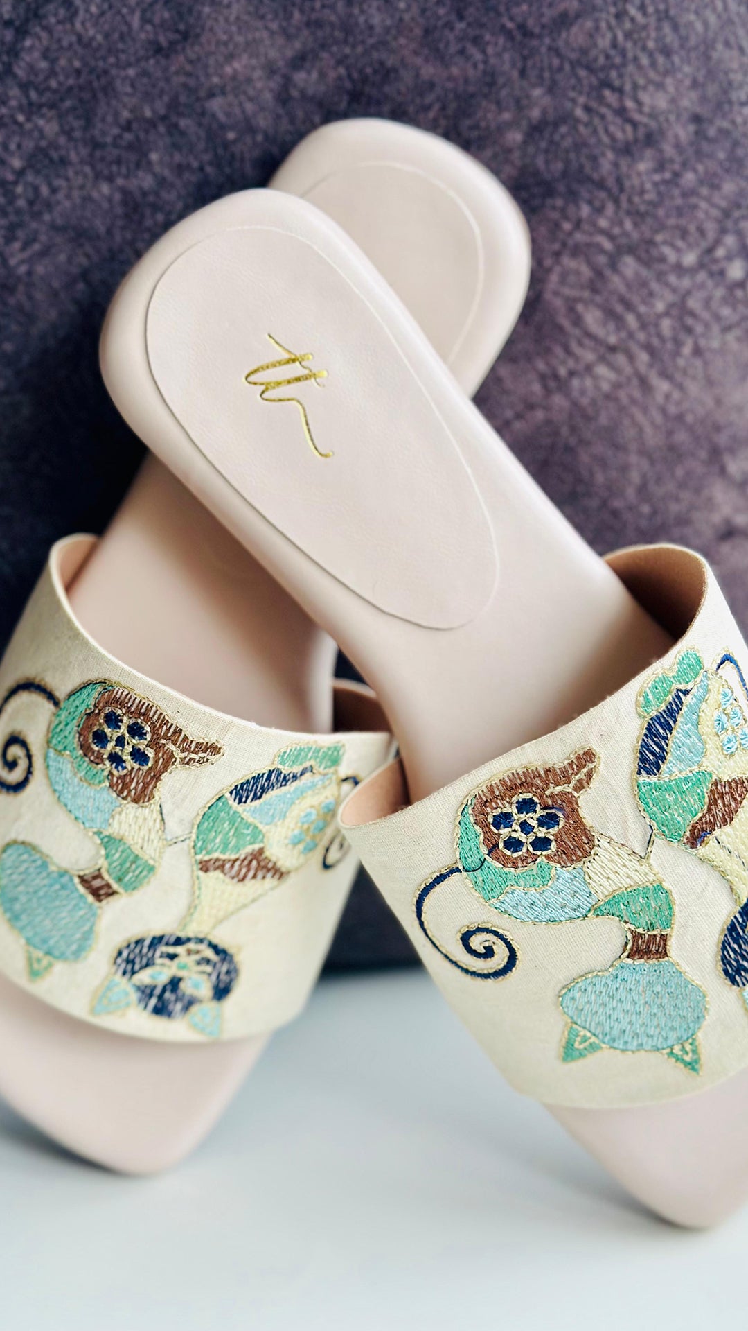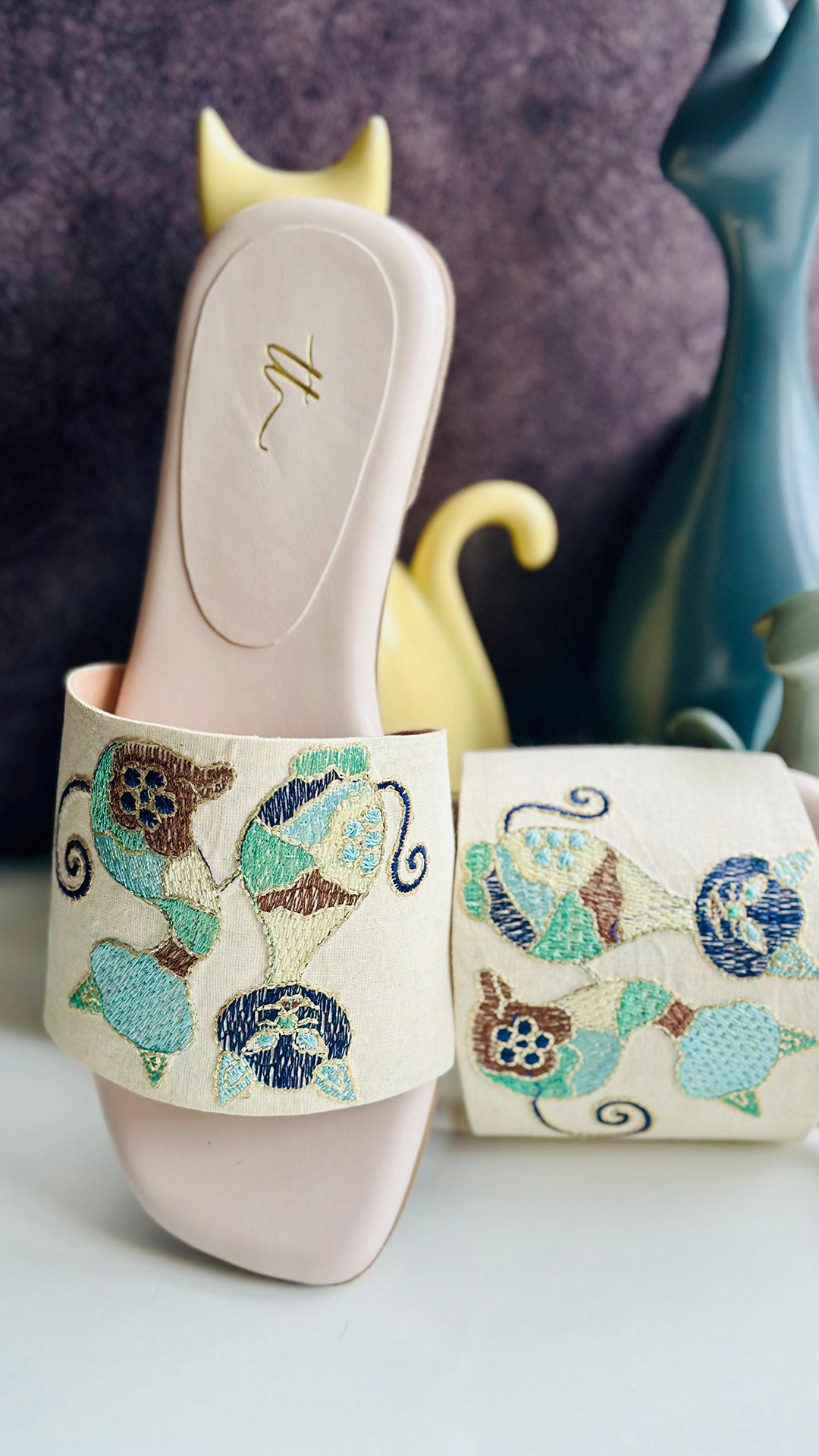 Charming and playful, this cream base flat features two adorable mice in shades of green, blue, and brown on the upper, creating a whimsical design that stands out. Ideal for those who love to add a touch of fun and character to their wardrobe, this flat is perfect for casual outings with a playful twist.