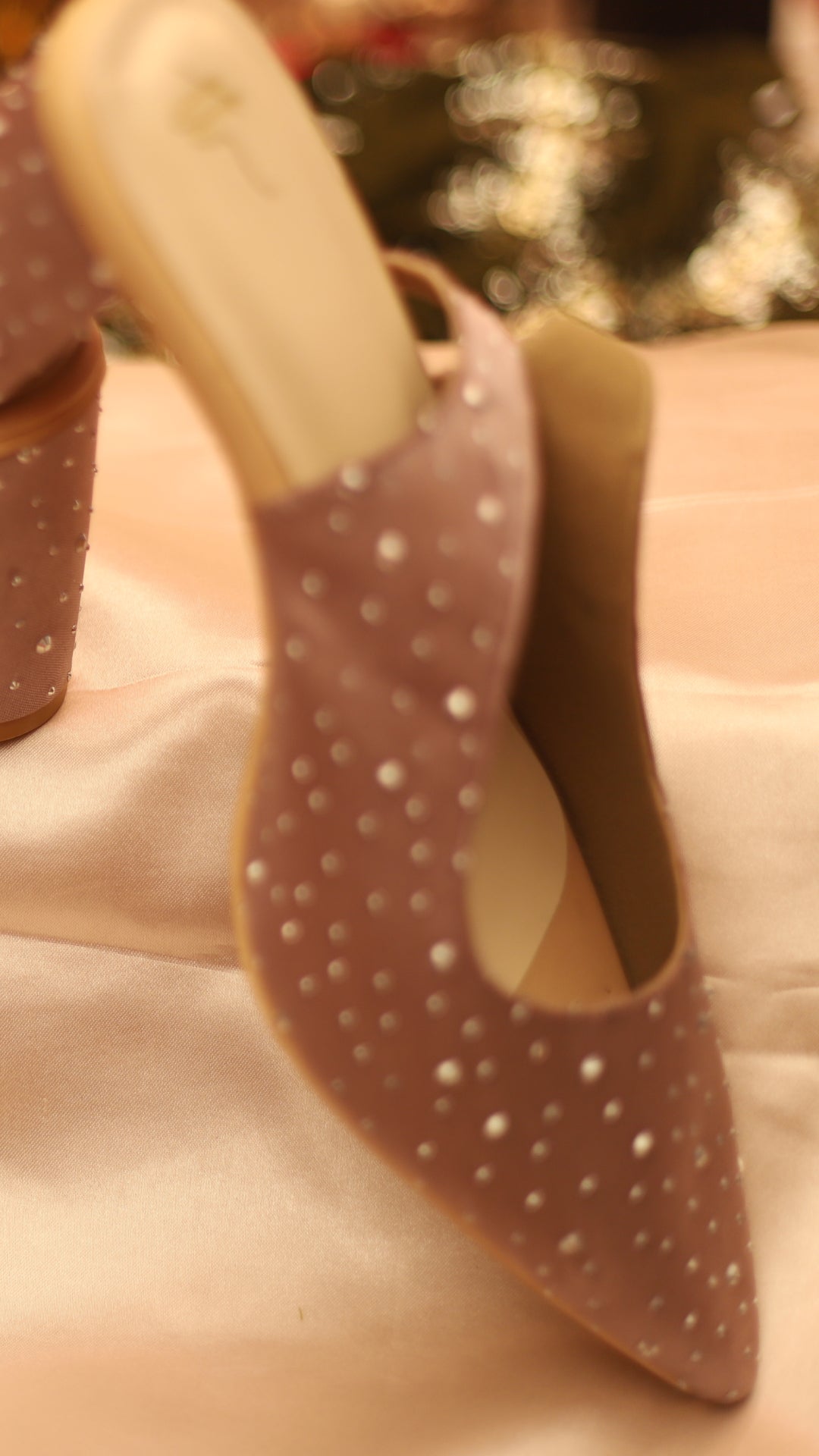 Soft, elegant, and magical — Moondust features a mauve mule heel with delicate silver dotted work. Ideal for party wear, ethnic outfits, saris, or even pairing with Indo-western styles.