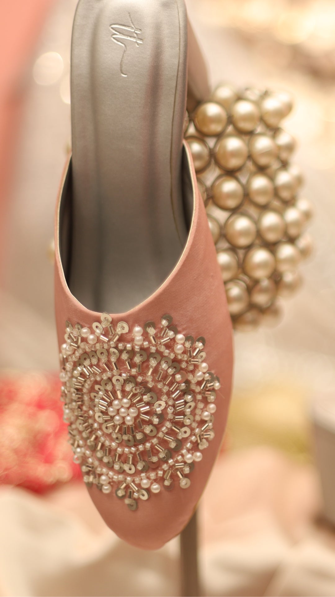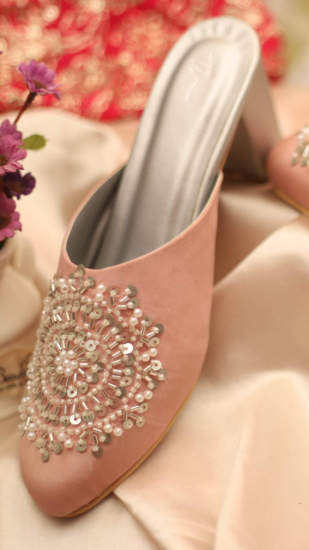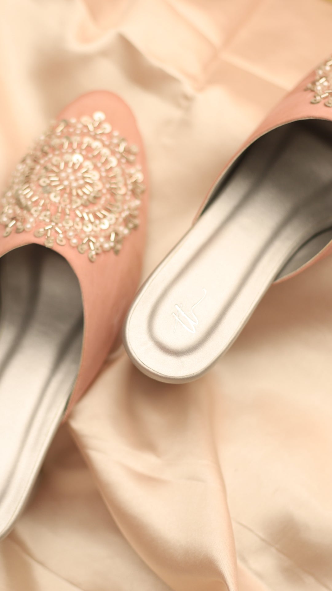 Meet Twilight, a dreamy pink and silver mule heel featuring intricate embroidery with pipes and pearls. The perfect pick for bridesmaids, festive outfits, or ethnic celebrations. Romantic hues, rich detailing, and a perfect heel height to dance the night away.