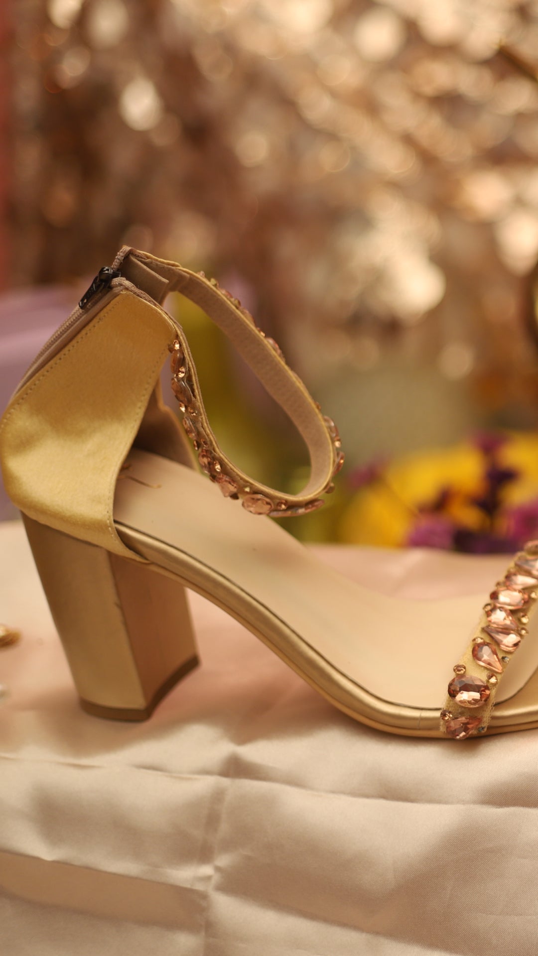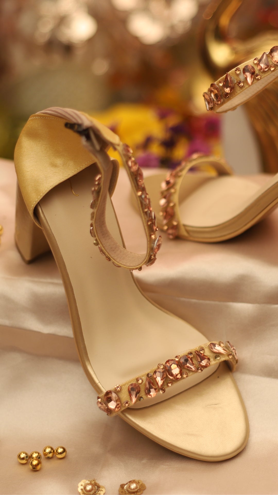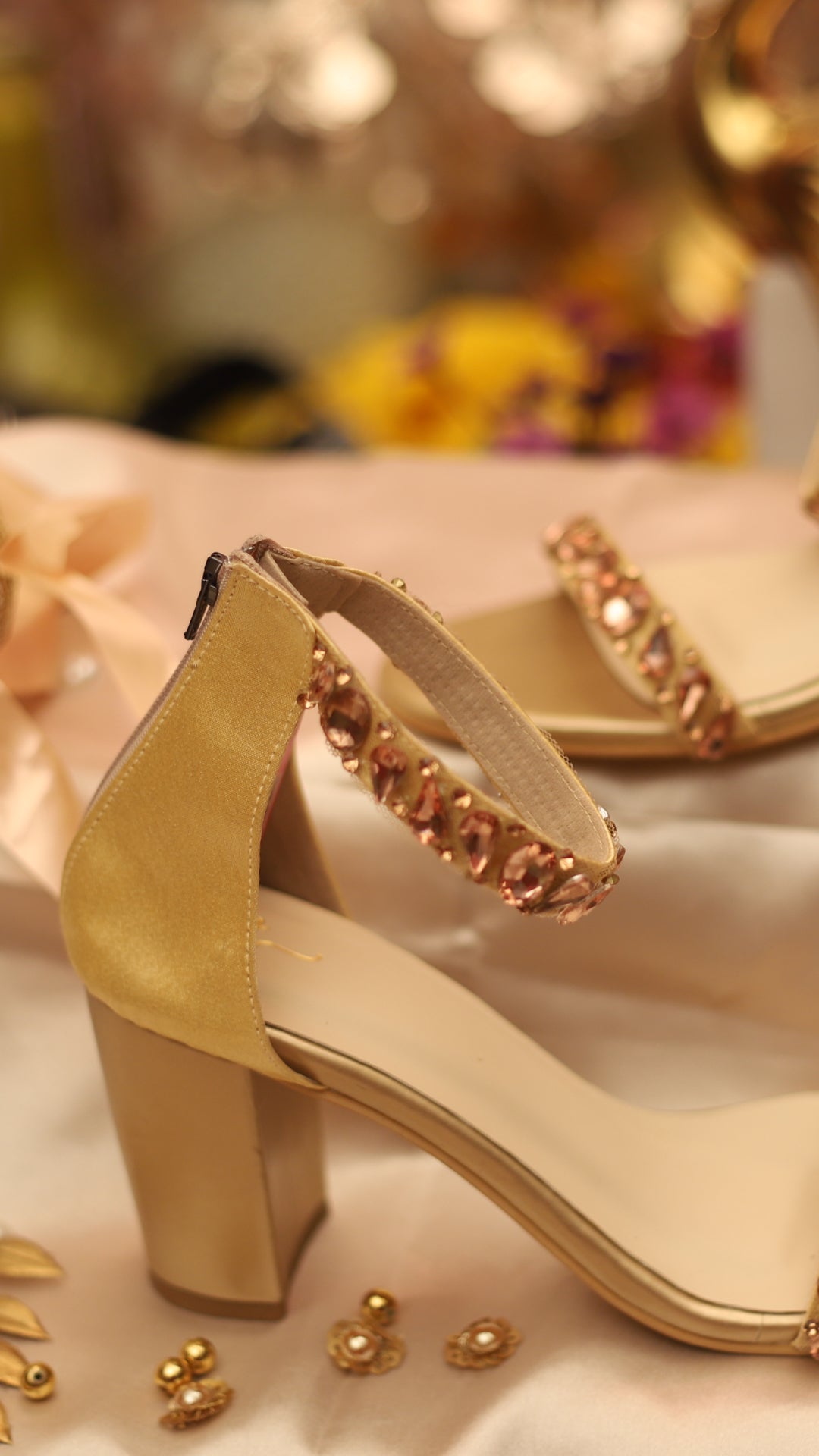 Shine bright with Bronzia, a copper-toned high heel featuring a large shimmering crystal at the center. Designed to dazzle, it’s the perfect match for grand celebrations, wedding receptions, or high-glamour parties.